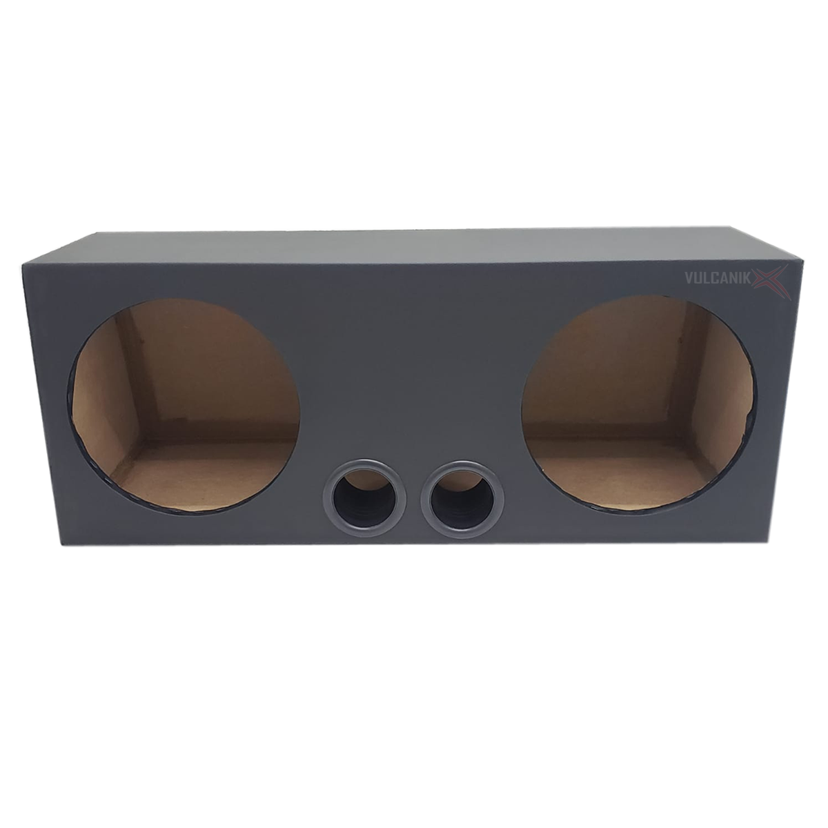 CAIXA DUPLA 12 POL TRAPEZIO 40L DUTO MEIO 3 POL DIMENSÕES EXTERNAS: LARGURA: 89CM PROFUNDIDADE INFERIOR: 36CM PROFUNDIDADE SUPERIOR: 26CM ALTURA: 36CM MATERIAL: MDF 15MM REVESTIMENTO: COUVIN E CARPETE